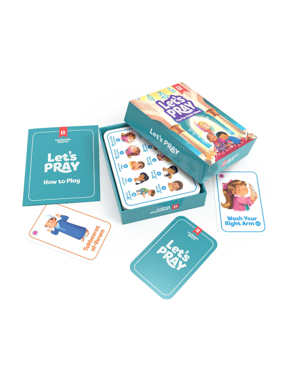 Make learning Salah an exciting and engaging experience for your children with Let’s Pray – The Fun Salah Game! Designed by Learning Roots, this interactive card game teaches kids the essential steps of prayer (Salah) and Wudu (ablution) in a fun and memorable way.