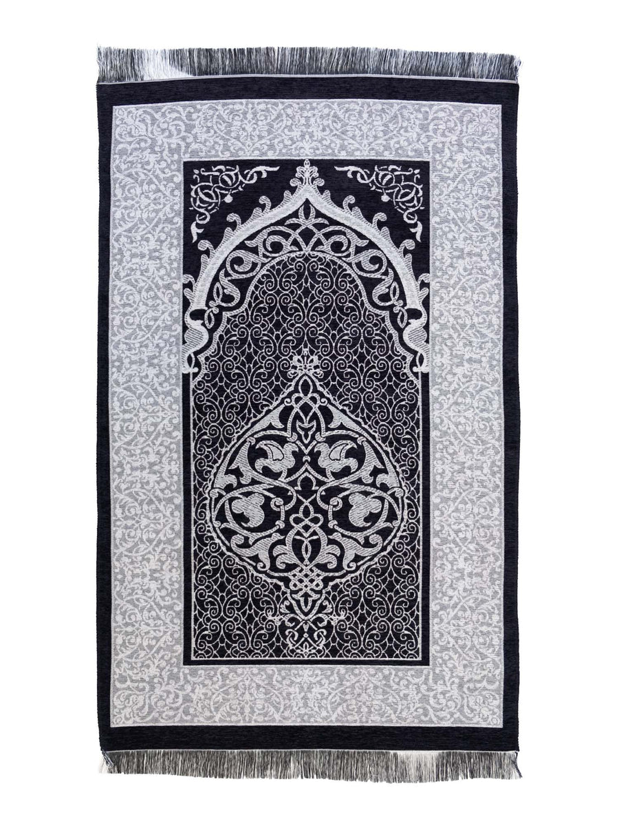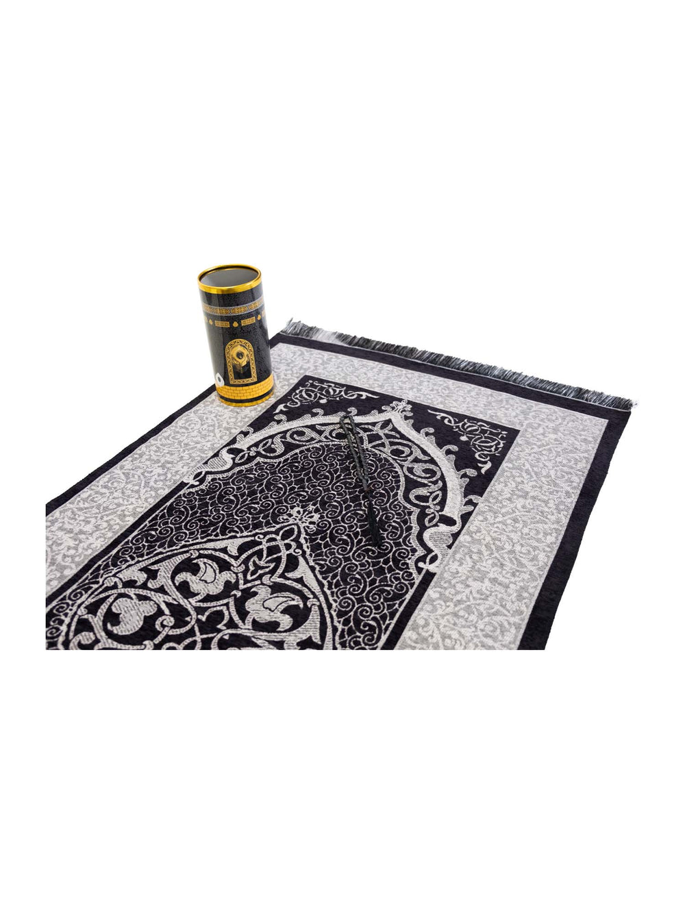 - Prayer Mat: Featuring an exquisite design, this prayer mat is available in two colour options—Black/Silver and Black/Gold. Crafted with care, the mat measures approximately 121cm x 71cm, including tassels, ensuring comfort during prayers.