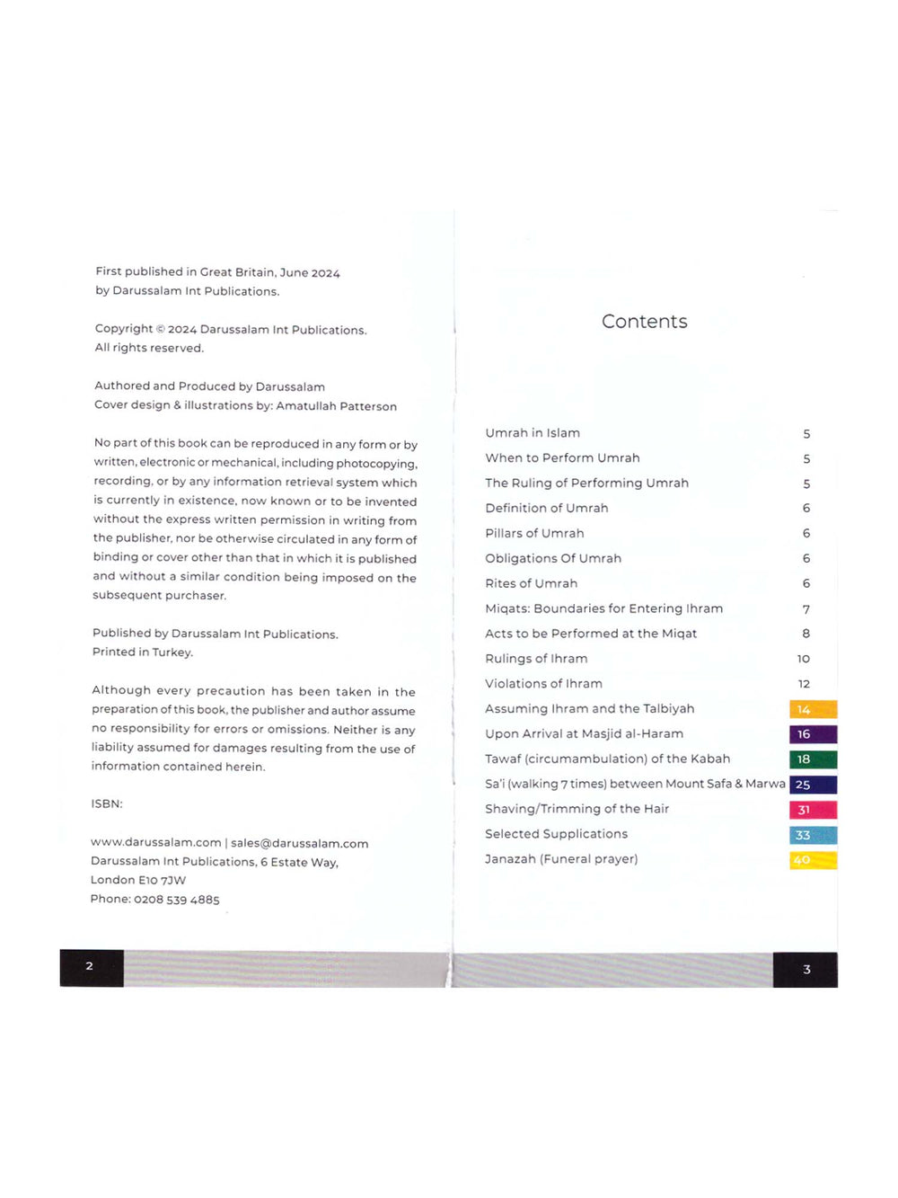 Featuring clear, full-colour illustrations and easy-to-follow instructions, this guide walks you through every stage of the sacred pilgrimage—from preparing for your journey to completing the rituals in Mecca and Medina. With a focus on accuracy and accessibility, it provides detailed explanations of key practices, prayers, and etiquette to ensure your Umrah is both meaningful and fulfilling.