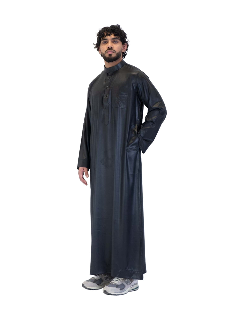 Discover the sophistication of our Islamic Impressions Silky Thobe With - Long Sleeve. This thobe is the epitome of elegance, crafted from silky smooth fabric that gracefully drapes over the body, offering both comfort and style. This thobe has a modern silhouette and ensures a refined look for any occasion. Whether for daily wear or special events, this thobe is a testament to timeless style and impeccable craftsmanship.