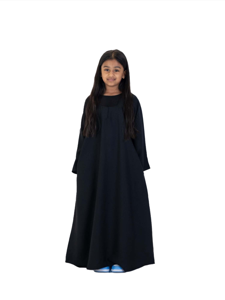 Featuring a round neckline with a single button opening⋅ This abaya although simple will meet your expectations for your everyday comfort⋅ This dress features an A-line cut flared bottom with pockets on both sides for your essentials.