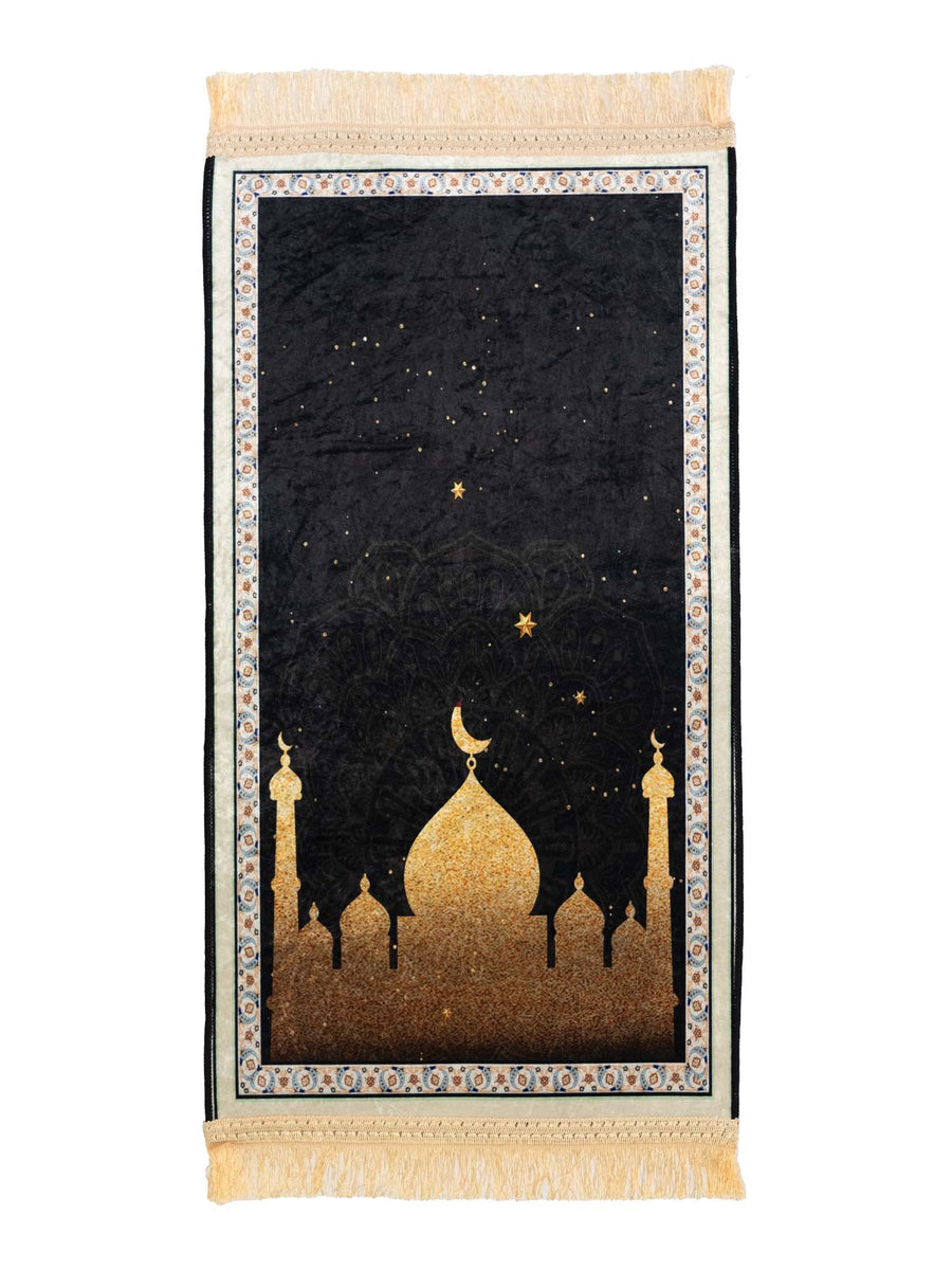 Children's Black Prayer Mat with Gold Masjid Design – Elegant & Comfortable